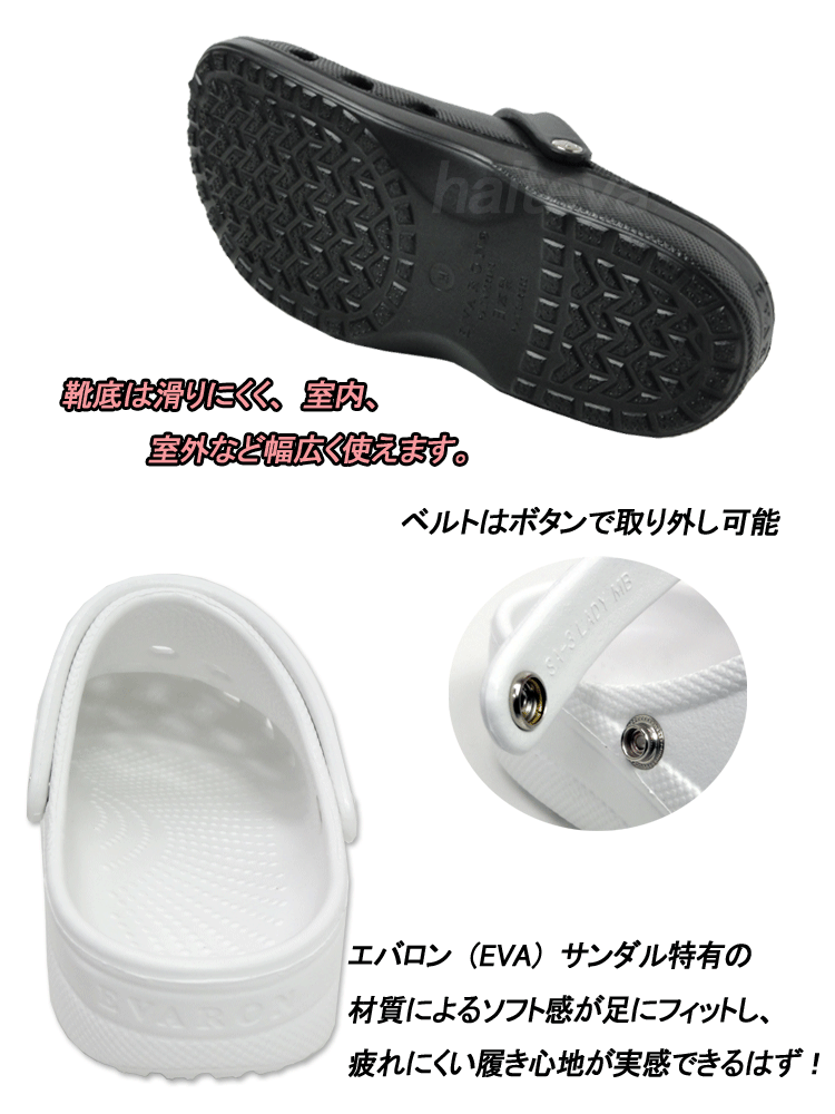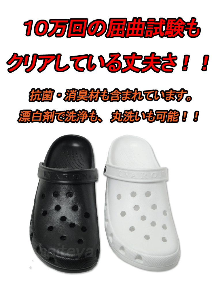 ●素材/甲材・中敷・底材:EVA(エバロン) ●ワイズ/4E相当 ●カラー/ホワイト、ブラック ●サイズ/ (M)25.0〜25.5cm (L)26.0〜26.5cm (LL)27.0〜27.5cm 注意 画面上と実物では多少色具合が異なって見える場合もございます。